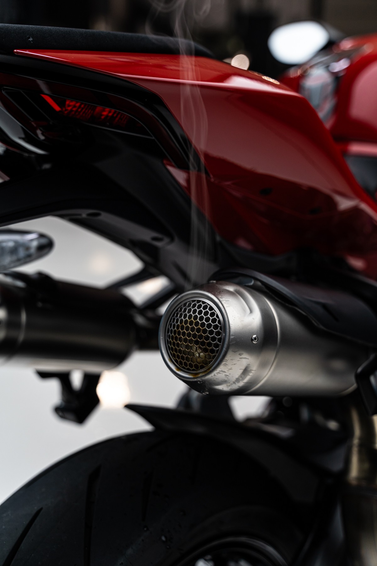 La nouvelle Ducati Panigale V2 marque une transition historique dans l'histoire des motos sportives bicylindres de Borgo Panigale. Pour la première fois, elle ne dérive pas de la moto plus grande qui concourt en Superbike et a été conçue à partir de zéro, ce qui a abouti à la création de la Panigale la plus légère de tous les temps. Elle pèse 17 kg de moins que le modèle précédent, héritant de l'attitude sportive caractéristique et des performances sur piste de cette moto et y ajoutant un niveau de facilité, de confort et de plaisir de conduite.