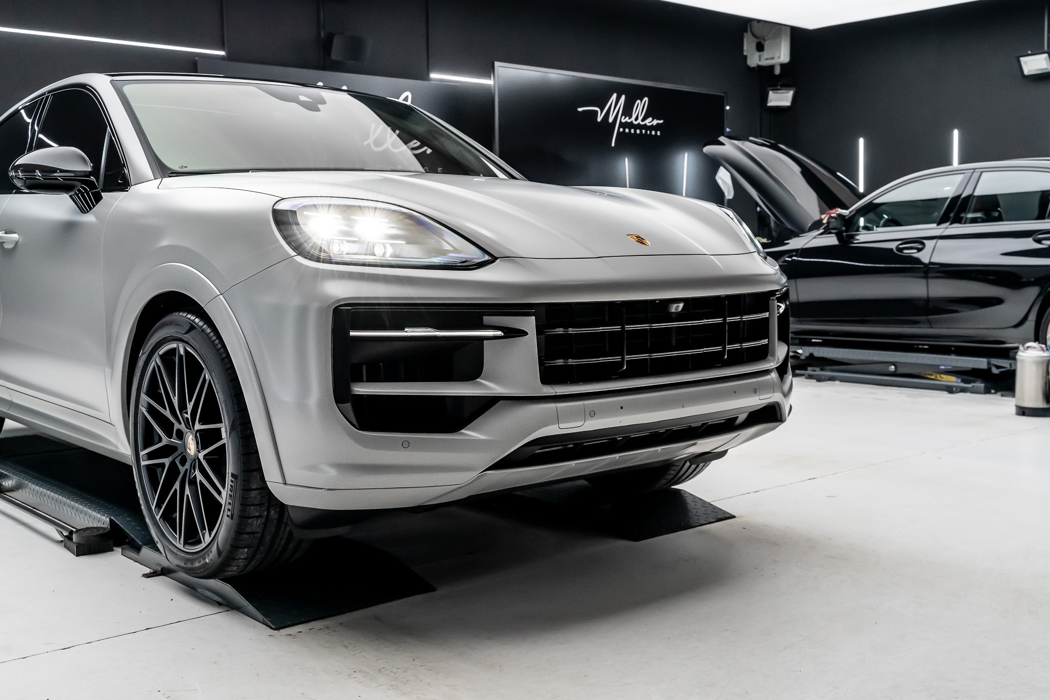 Protection PPF Xpel Stealth mate complète sur une Porsche Cayenne coupé crayon