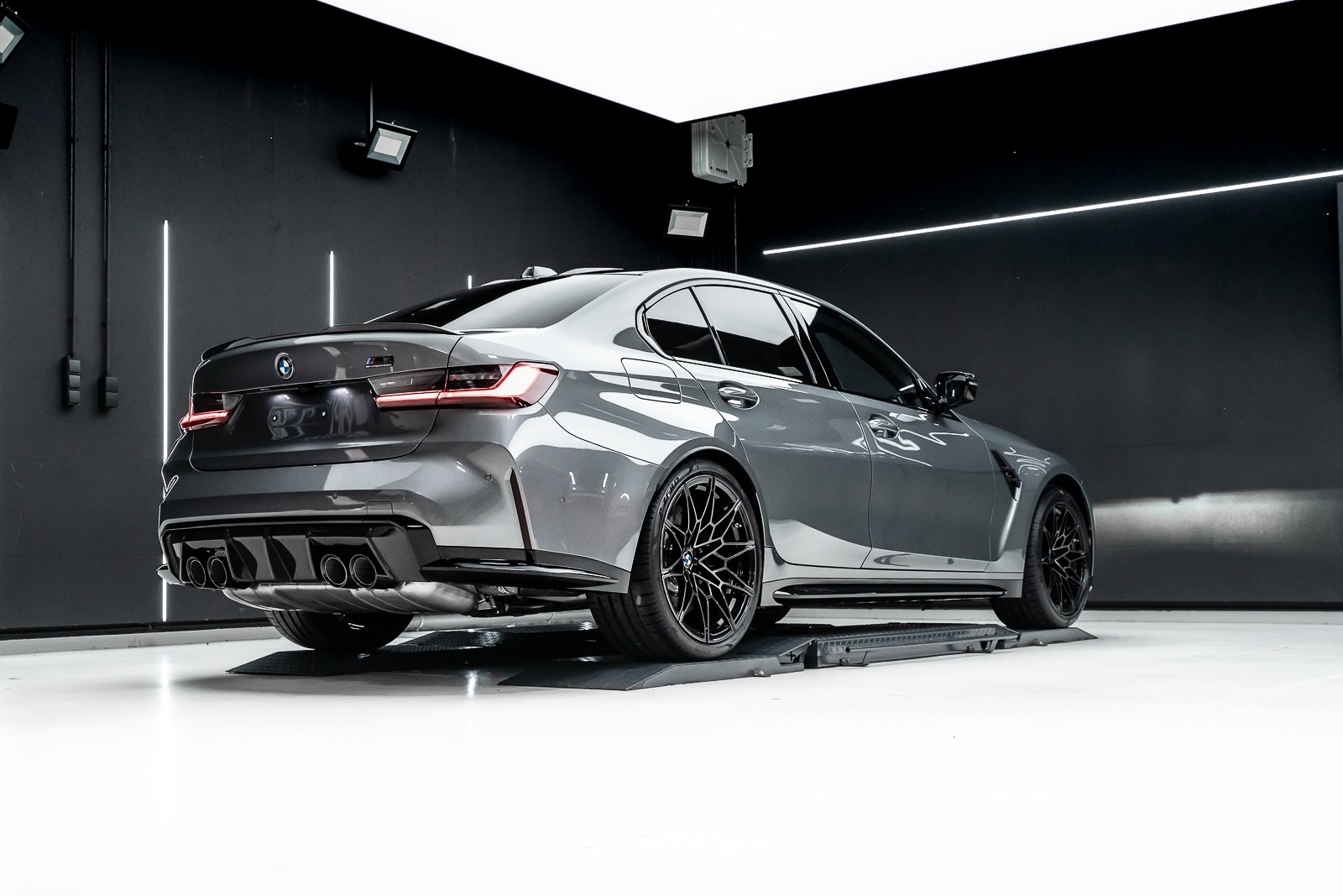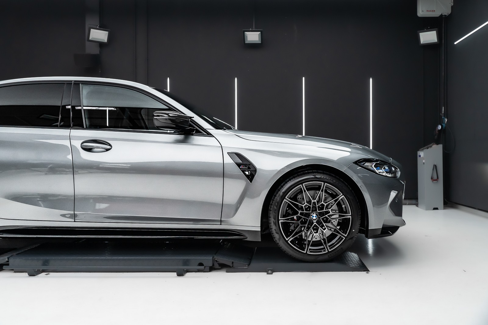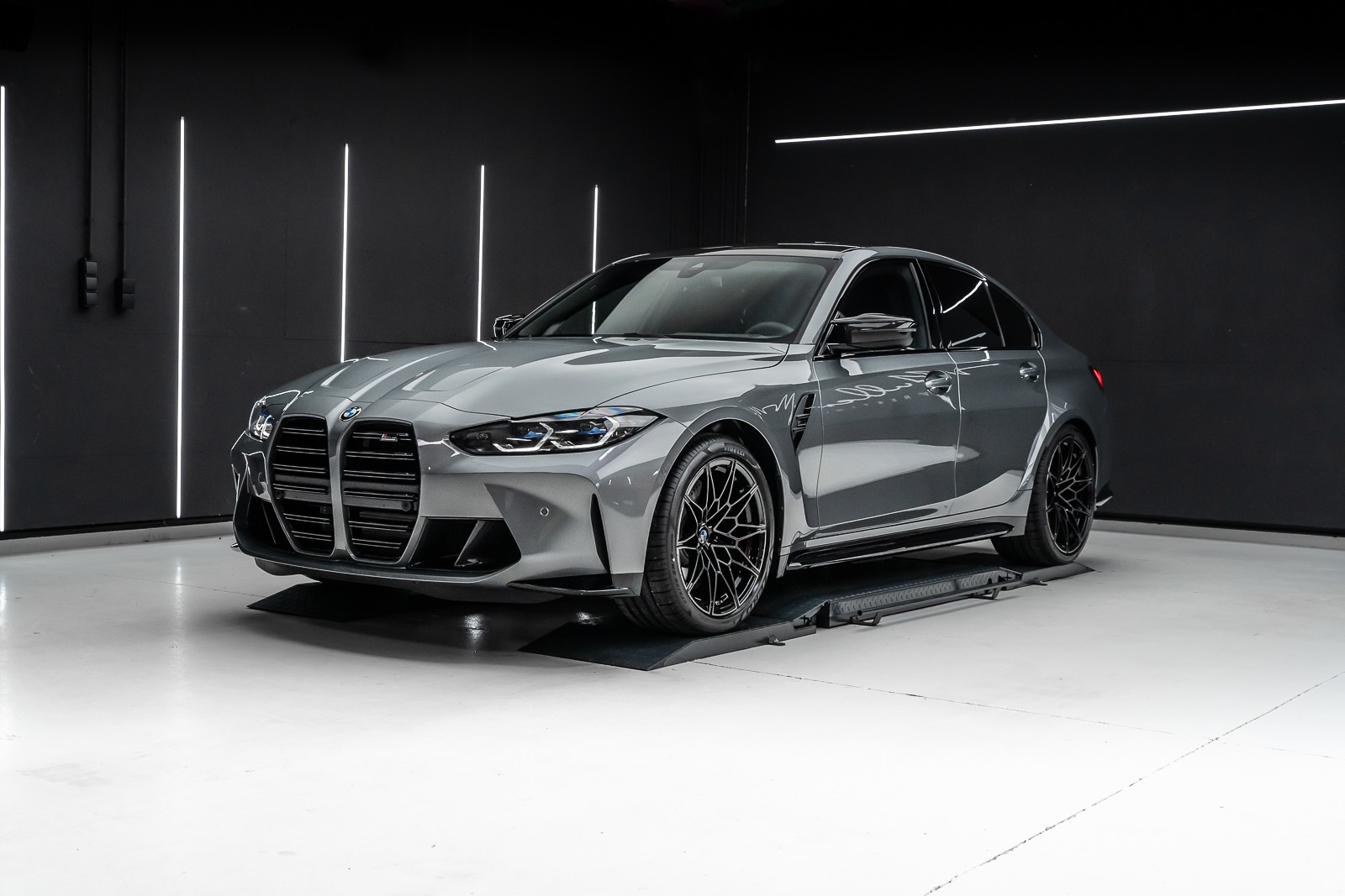 La BMW M3 Competition grise incarne la sportivité à l’état pur.