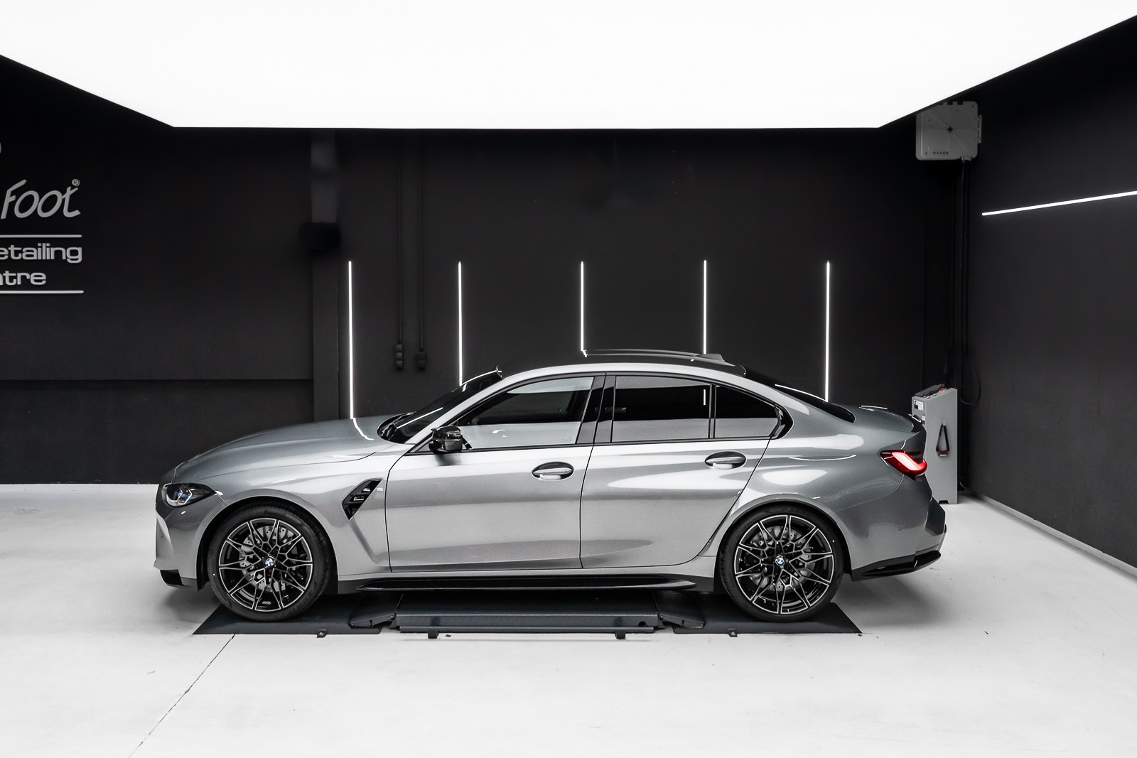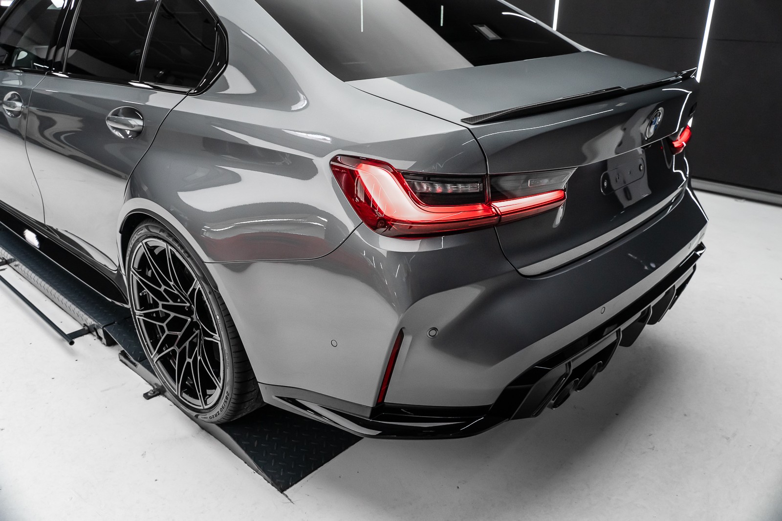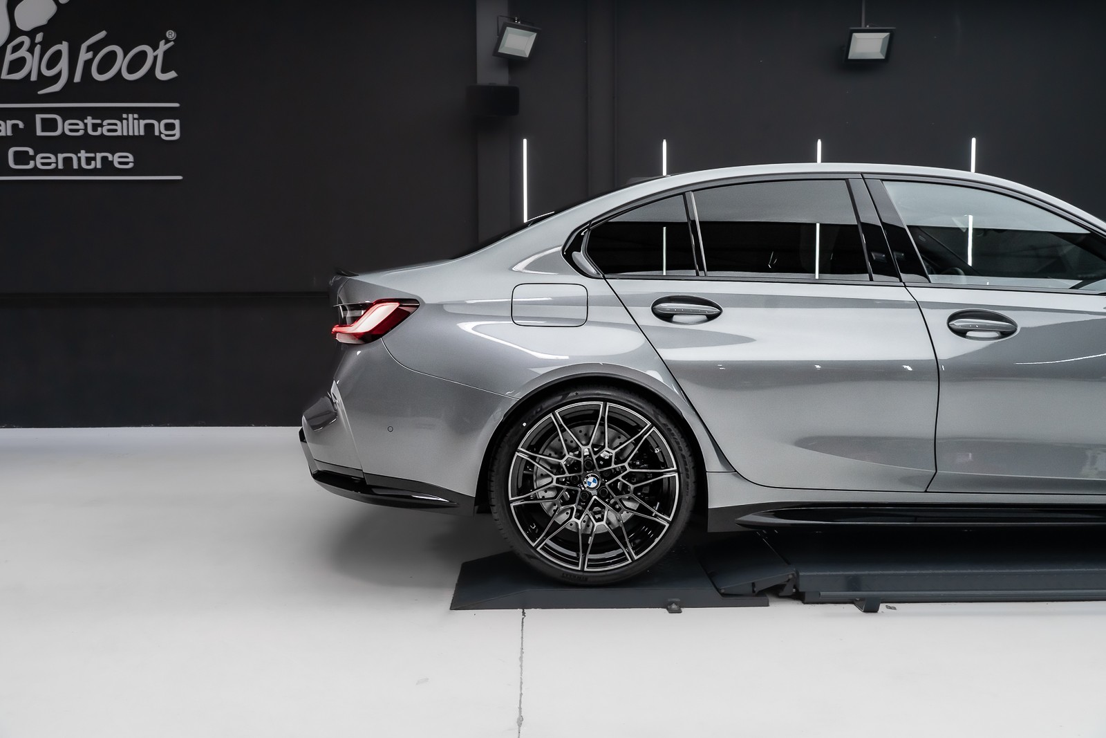 La BMW M3 Competition grise incarne la sportivité à l’état pur.