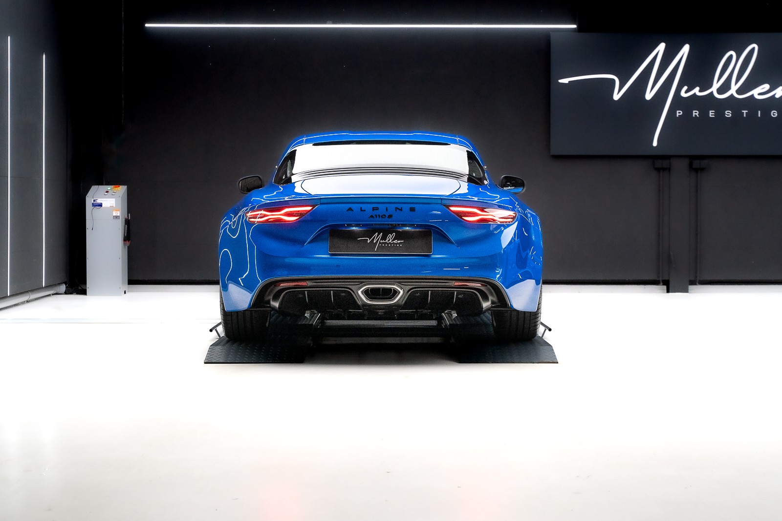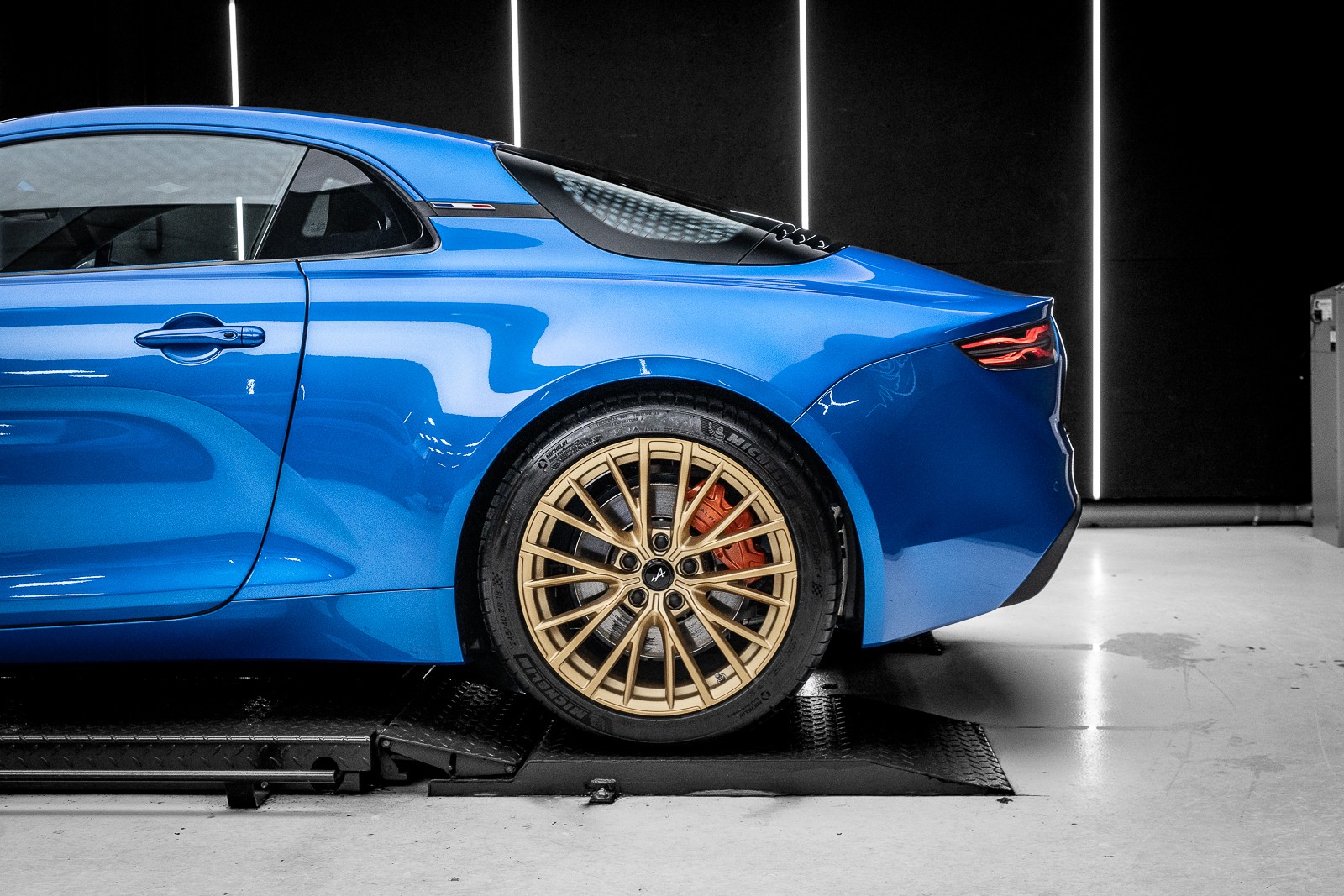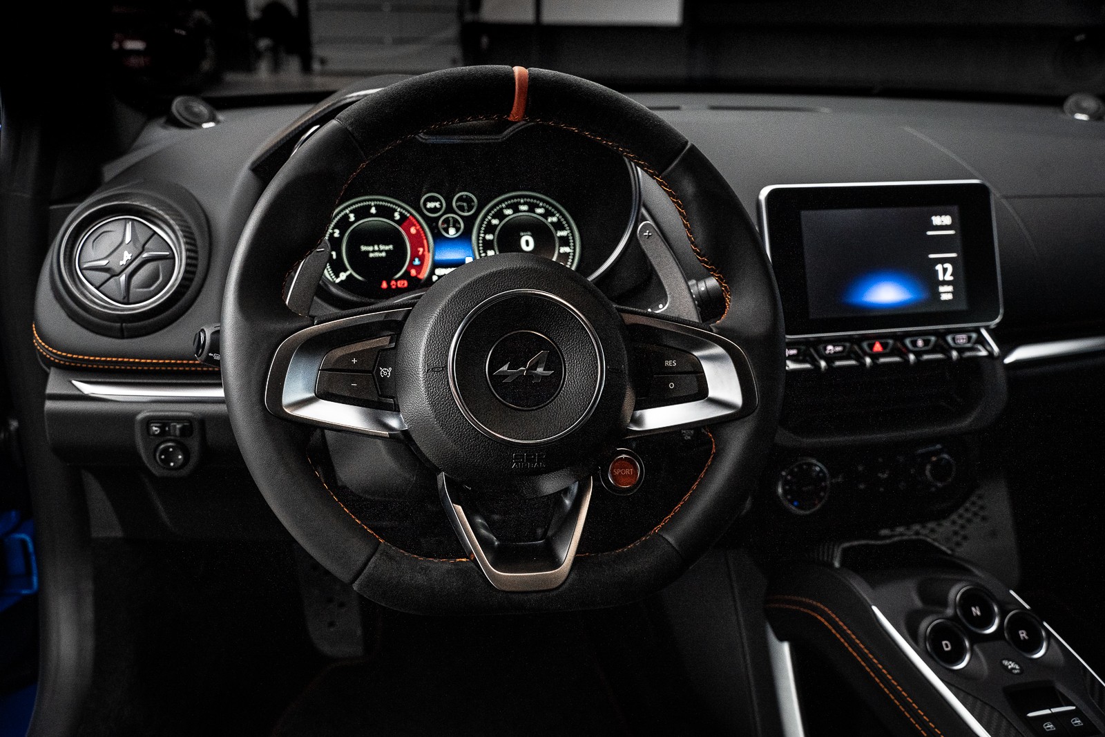 La combinaison de son châssis « Alpine » et de son moteur de 252 chevaux offre un plaisir de conduite rappelant celui de la mythique Berlinette. Légère, précise et réactive, l’A110 se distingue par son agilité et son dynamisme en toutes conditions. De série, l’A110 est équipée de jantes Sérac de 18 pouces et de disques ventilés de 320 mm pour un freinage haute performance, ainsi que de rétroviseurs extérieurs rabattables électriquement. À l'intérieur, un pédalier sport avec repose-pied en aluminium ajoute une touche de sportivité.