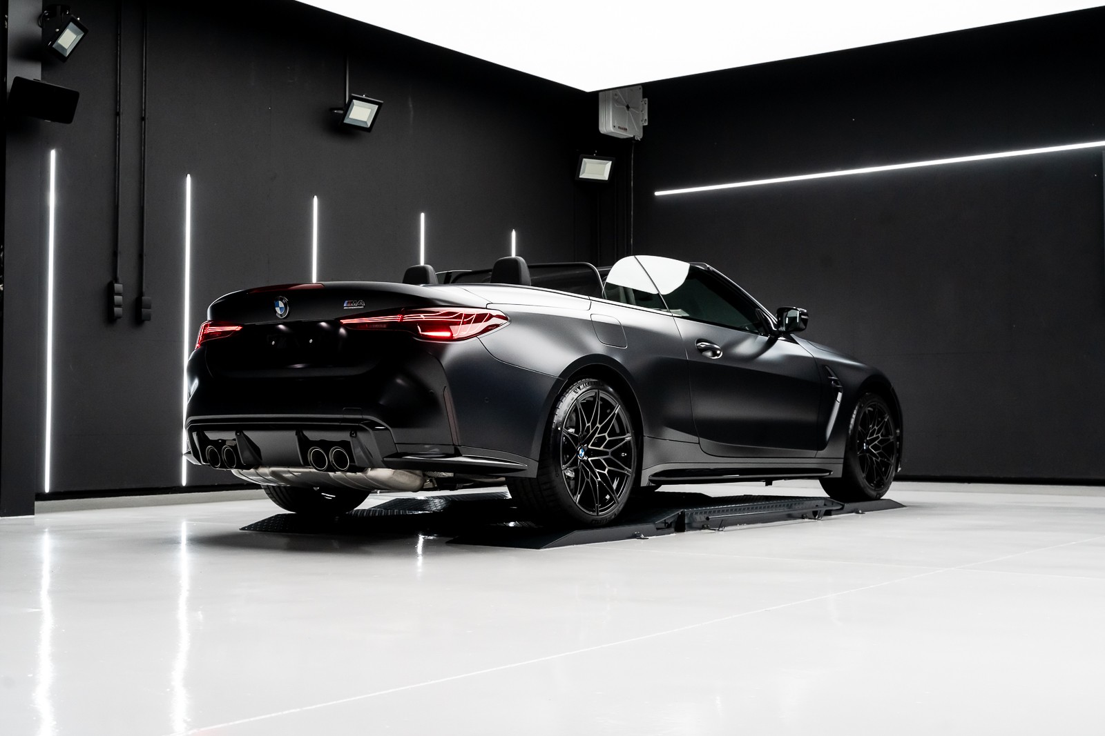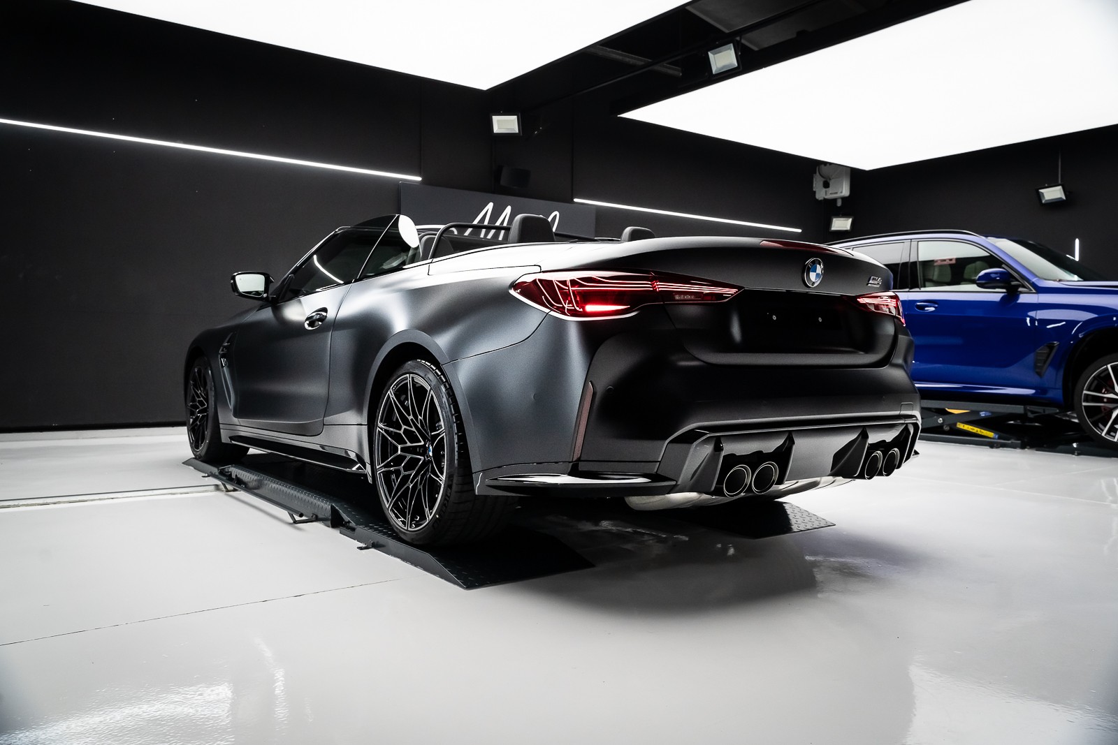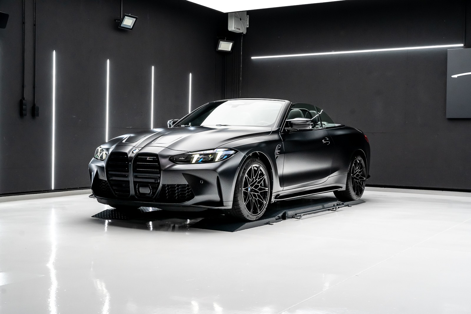 Pose d'un film PPF XPEL mate sur une BMW M4 cabriolet noire