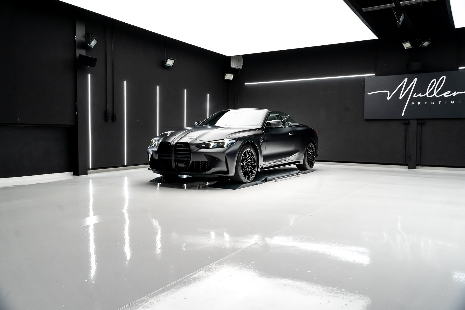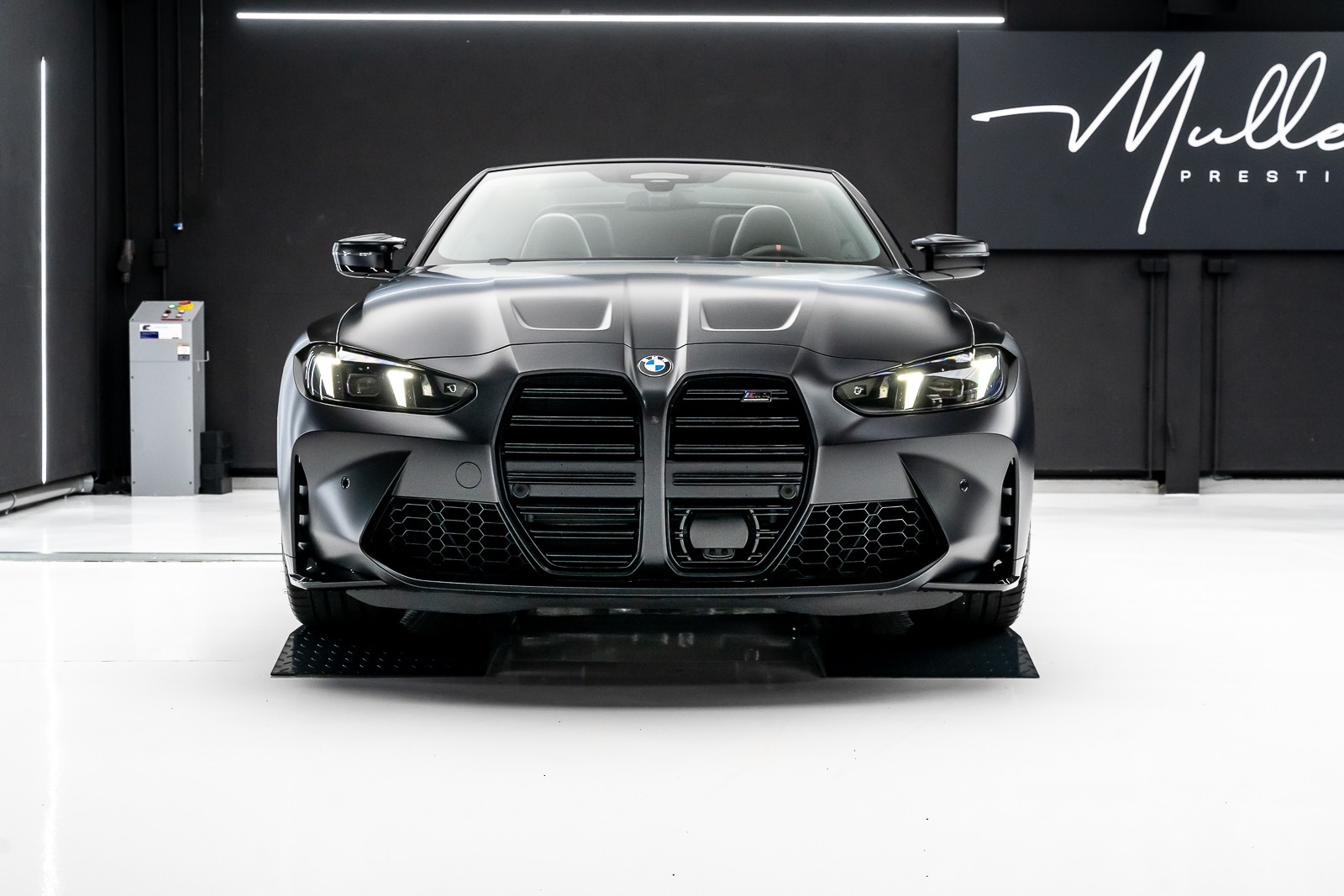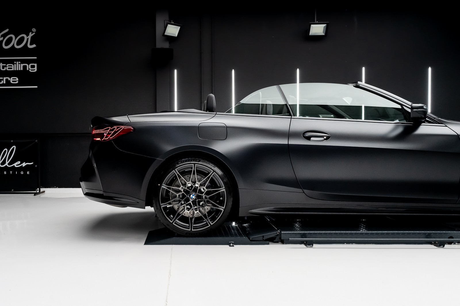 Pose d'un film PPF XPEL mate sur une BMW M4 cabriolet noire