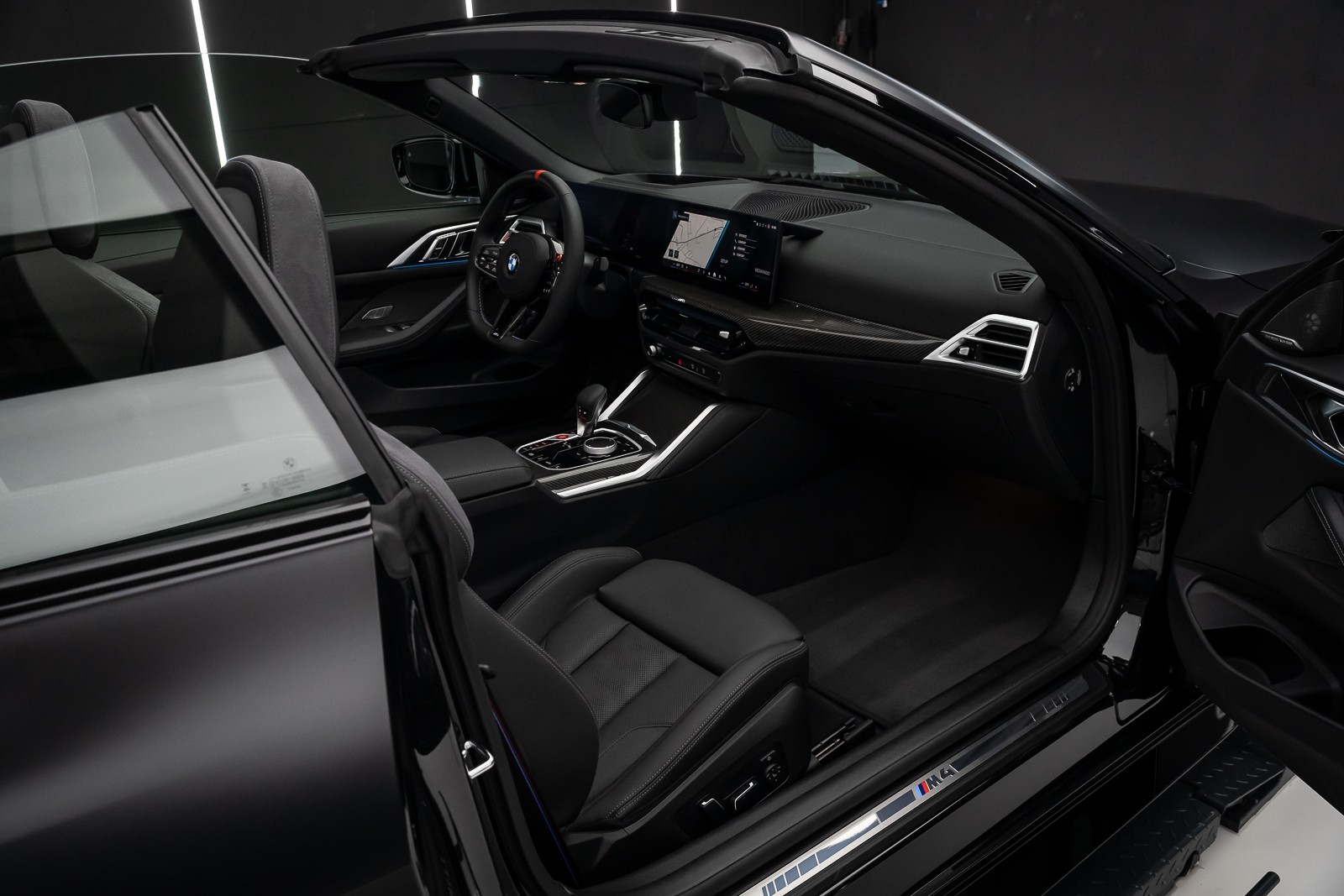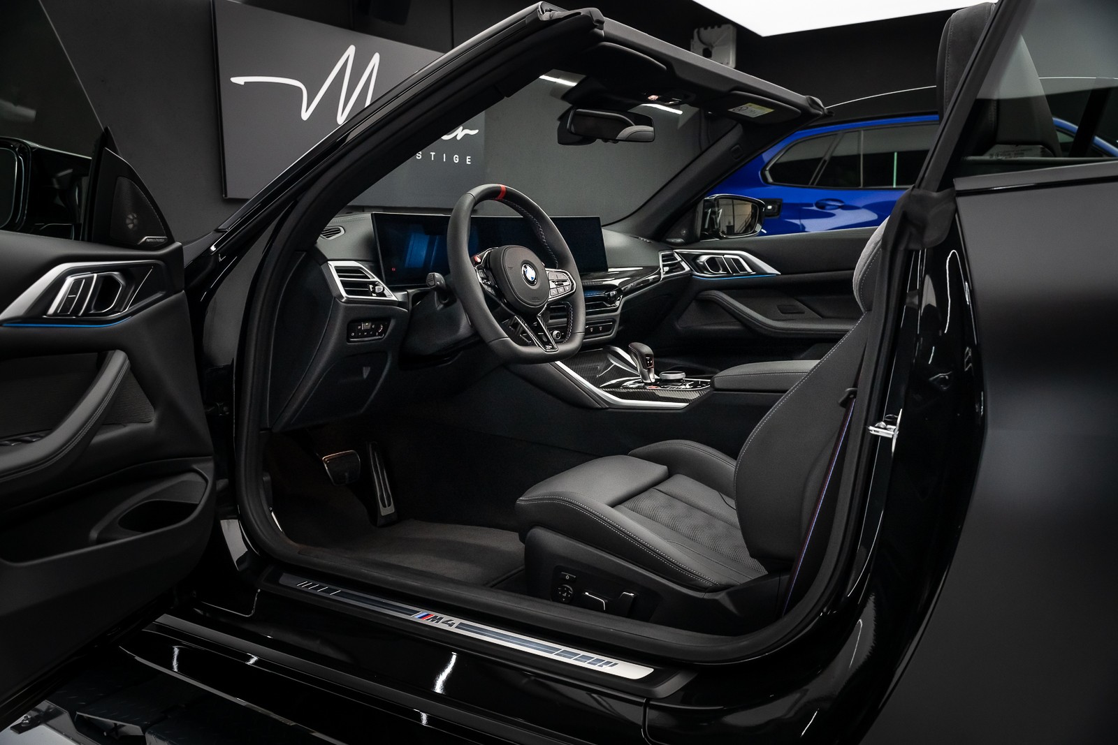 Pose de film PPF XPEL mat sur BMW M4 Cabriolet noire : transformation élégante et protection optimale de la carrosserie.