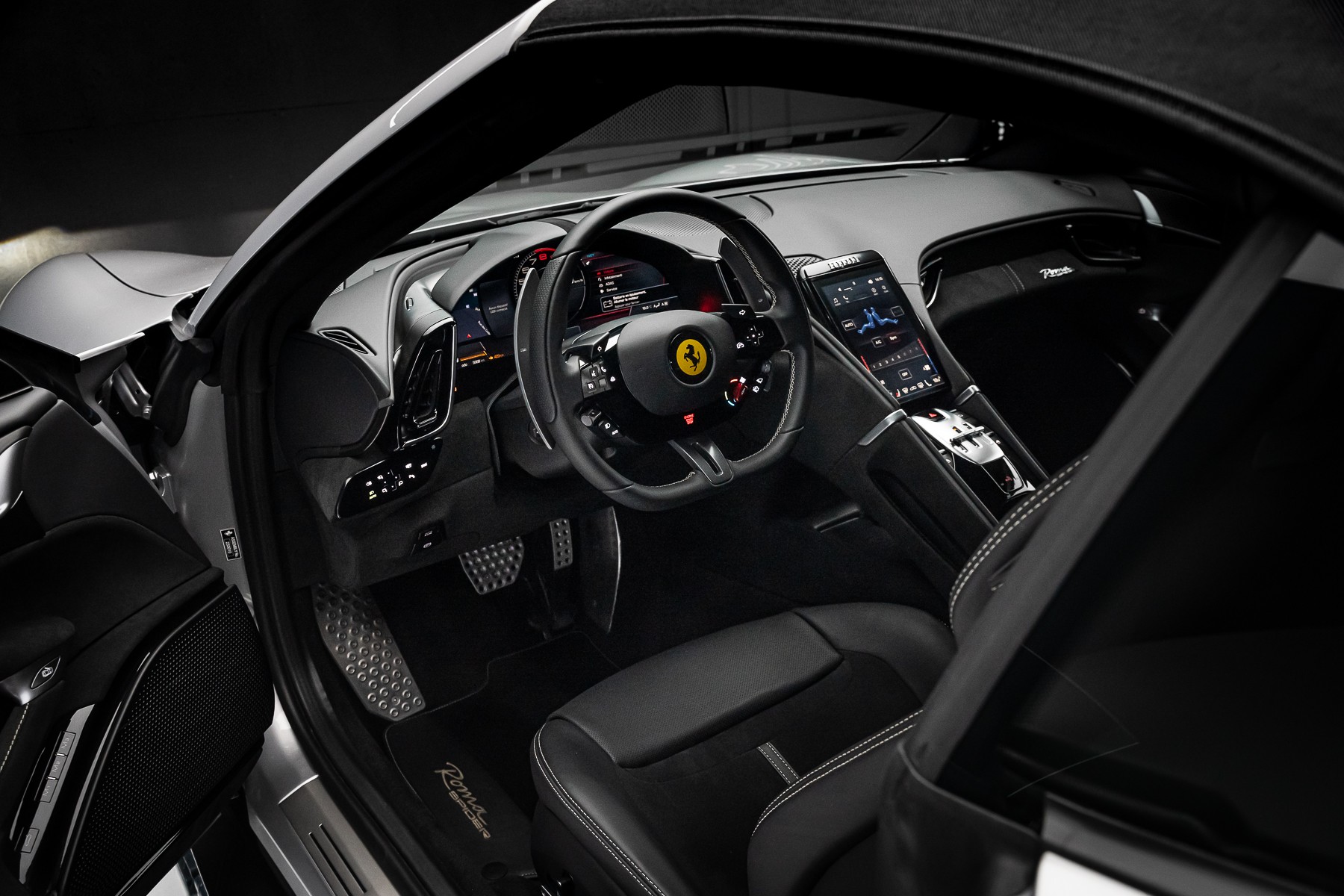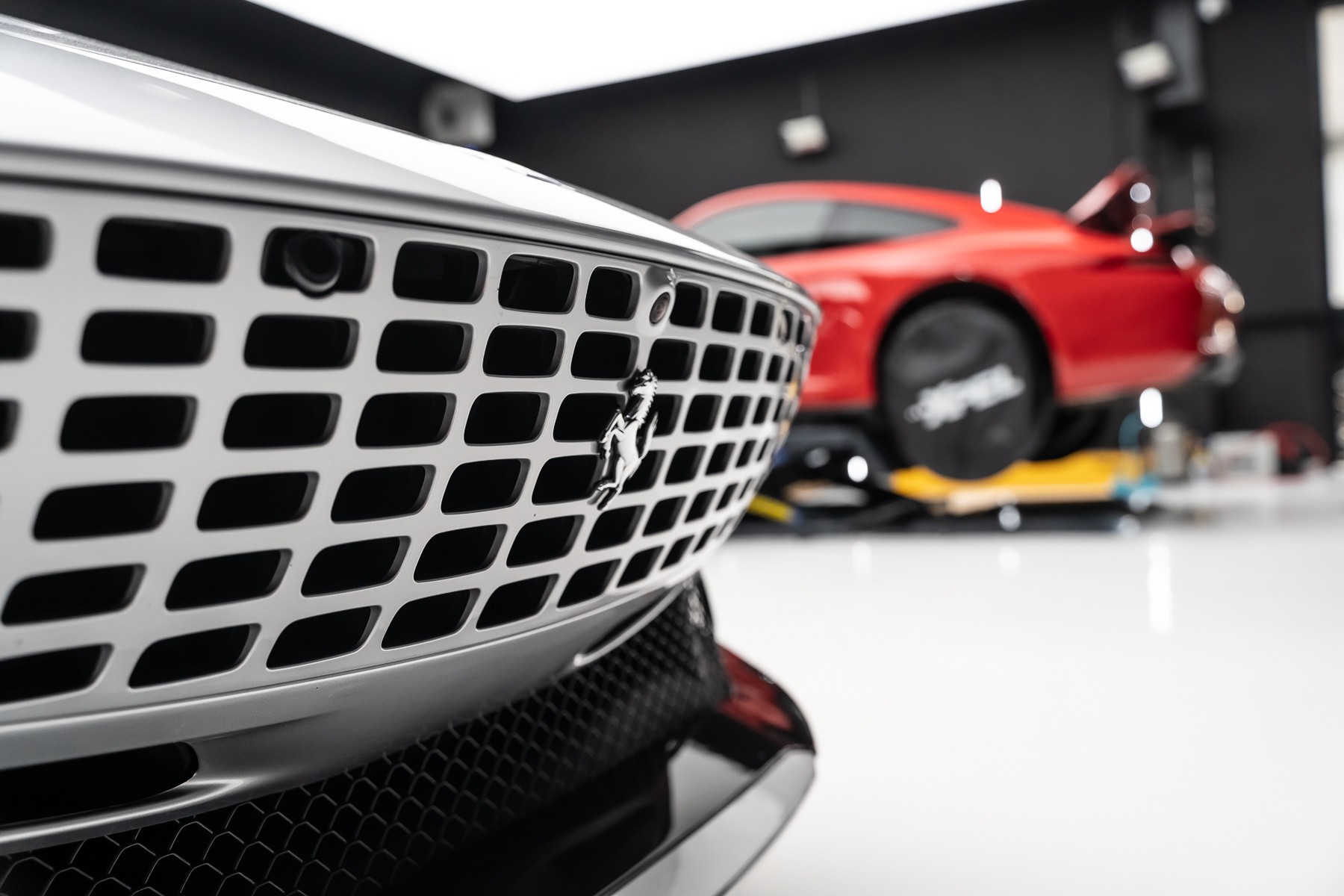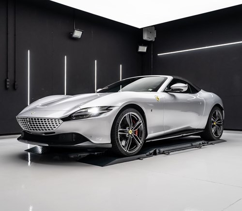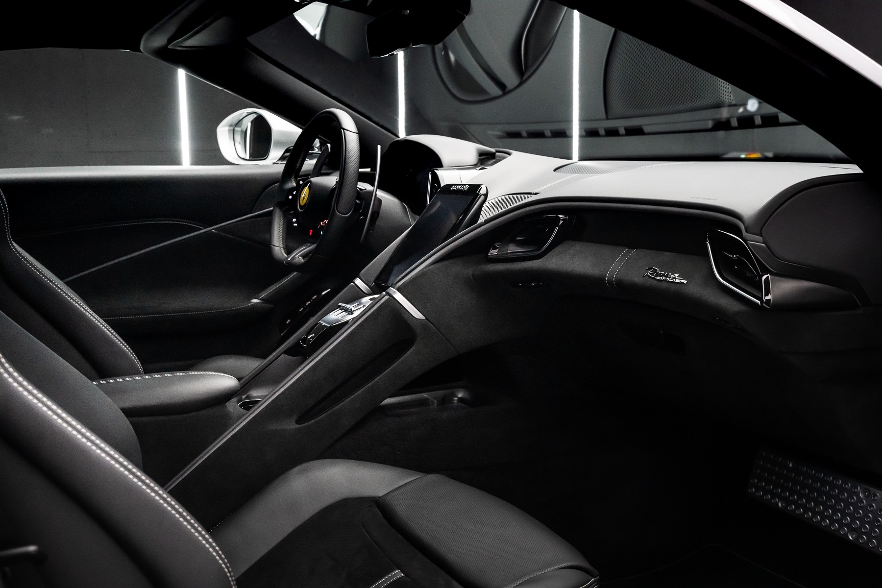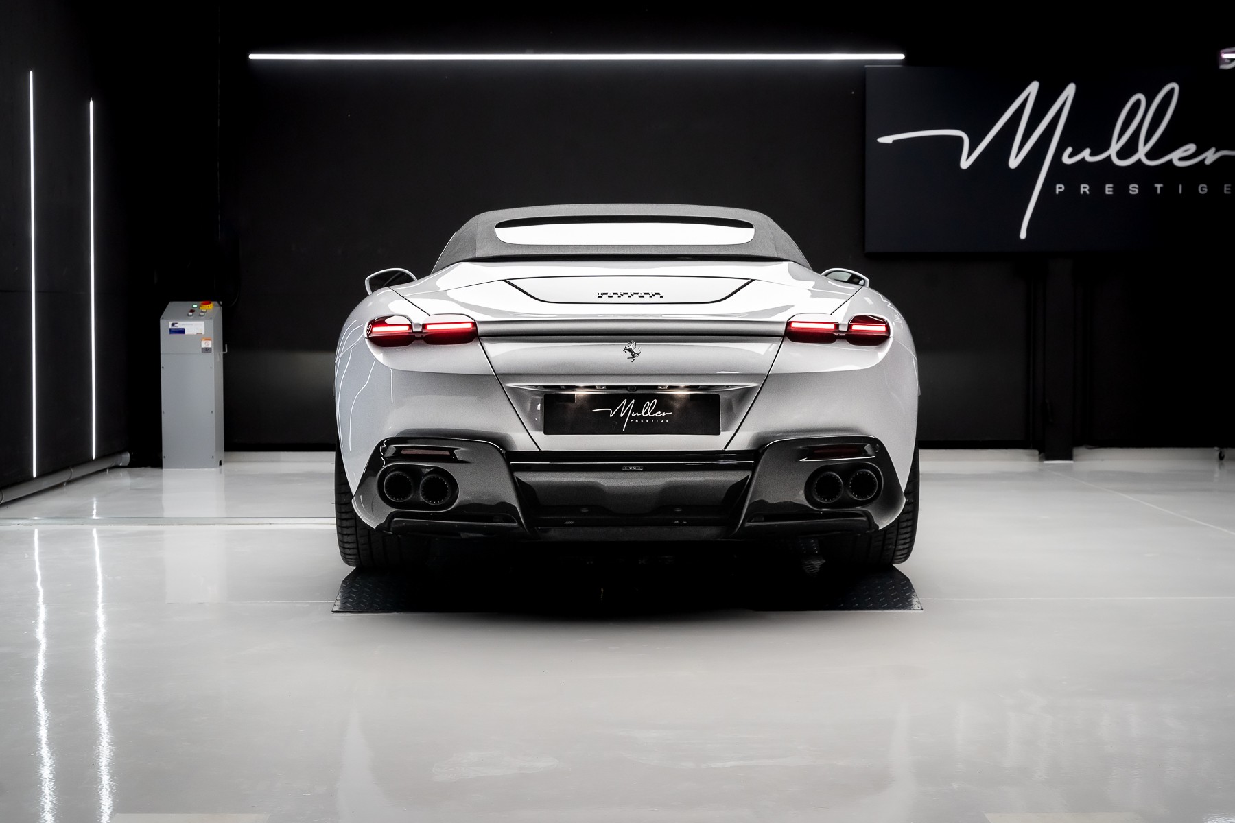 Pose de film PPF sur Ferrari Roma Spider : protection haut de gamme de la carrosserie contre les rayures, projections de pierres et agressions extérieures.