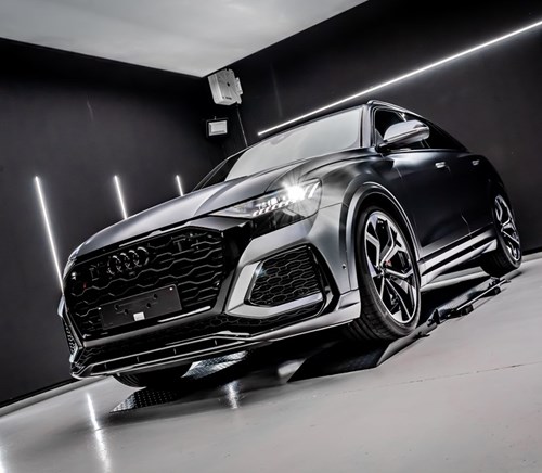 Pose d'un film PPF mat sur une Audi RSQ8 grise 2022